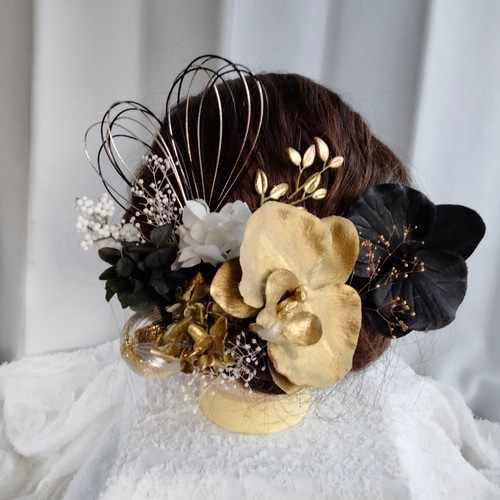 | メーカー | 黒 ゴールド 和装髪飾り 振袖髪飾り 成人式髪飾り 色打掛髪飾り 結婚式 ブラックゴールドの水引髪飾り |