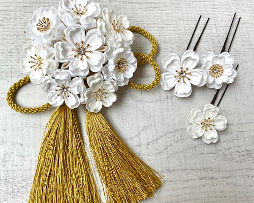 - レディース > ヘアアクセサリー > つまみ細工 髪飾り 鶴 桜 梅 成人式 卒業式 結婚式 七五三 かんざし つまみ細工 桜の髪飾り white *白 *七五三*成人式*卒業式*和婚*花嫁