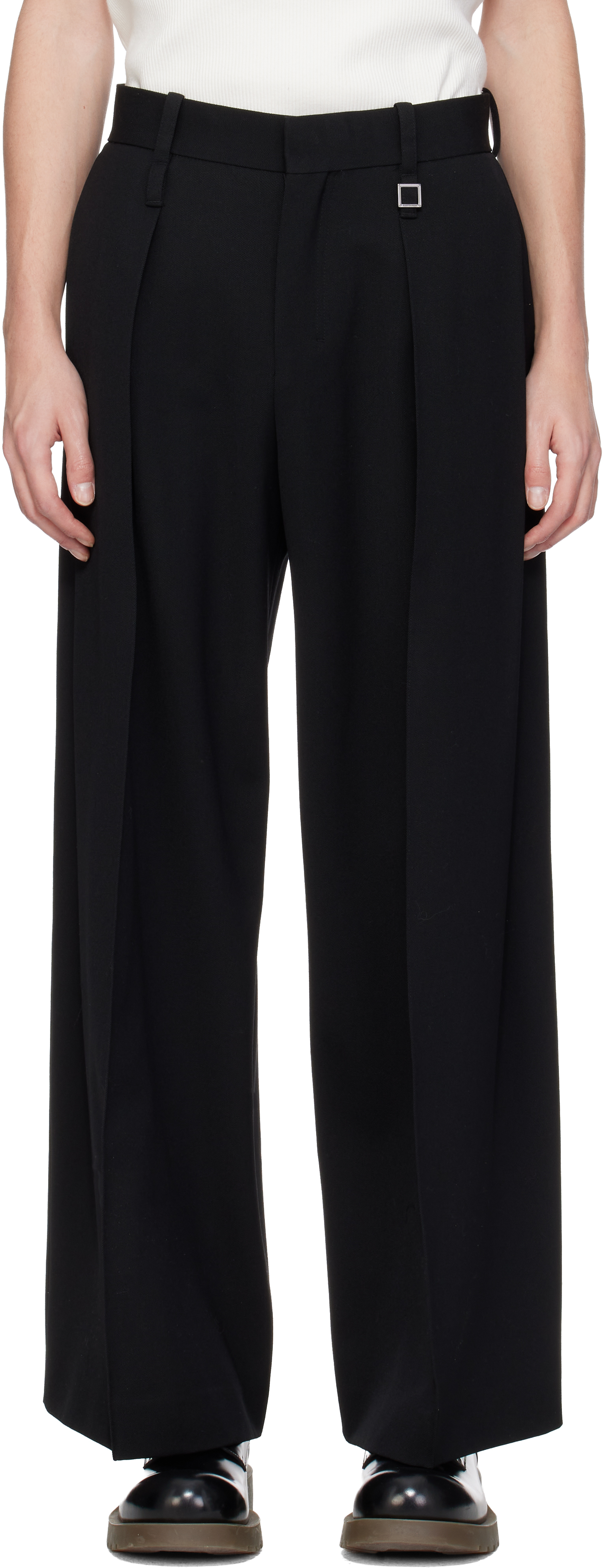 - メンズ > パンツ > 【LAPIIS】TWO TUCK WOOL WIDE SHORTTROUSERS Black Two Tuck Wide Trousers by WOOYOUNGMI on Sale