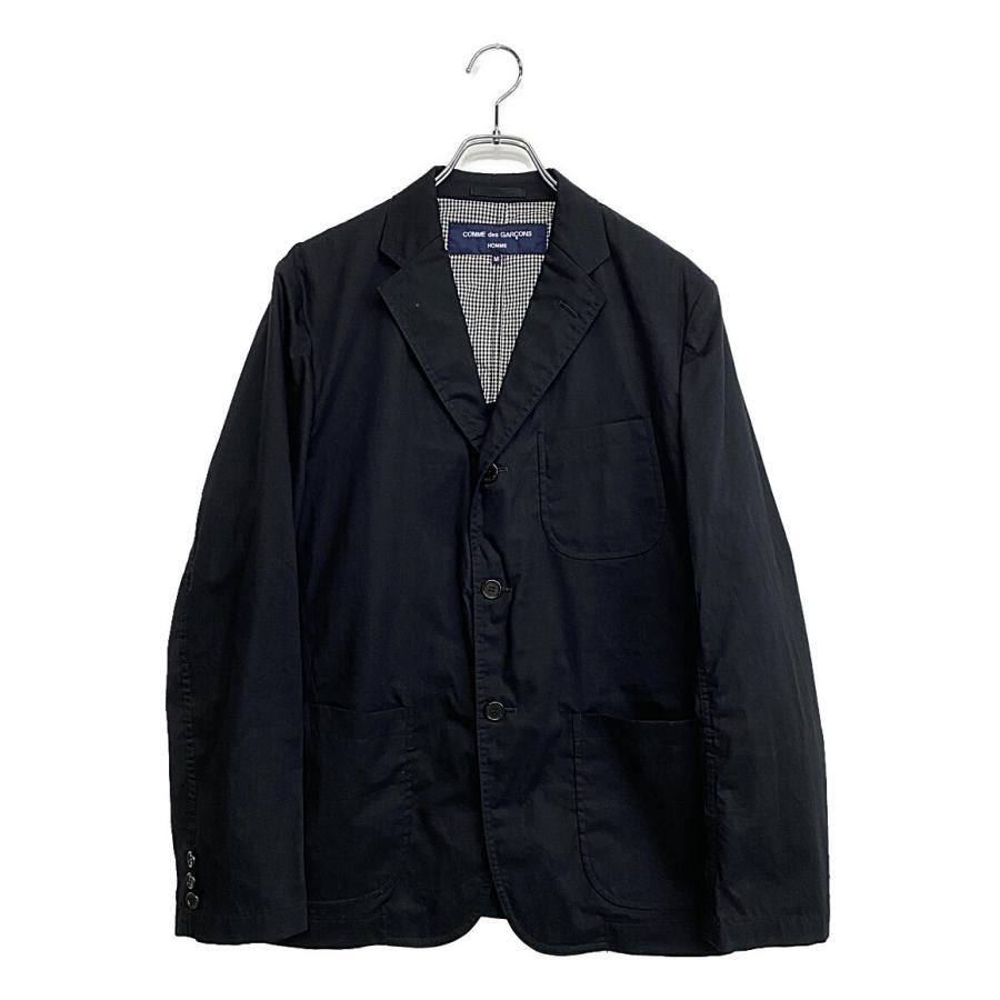 【美品】コムデギャルソン ポリ縮 クロップド テーラードジャケット S ネイビー コムデギャルソンオム テーラードジャケット ブラック HM-J103 メンズ
