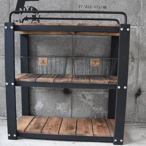 - 棚・ラック・シェルフ > 木製ラック・ウッドラック > 【かごつき】 男前インテリア アイアンバーラック 植物 インダストリアル 602 おまけかご付き】アイアンバーシェルフ 男前インテリア ハンドメイド
