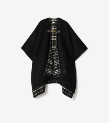 Burberrys ポンチョ ノバチェックケープ カシミヤ混 黒 ヴィンテージ1 チェック カシミアケープ (ブラック/キャラコベージュ) | Burberry