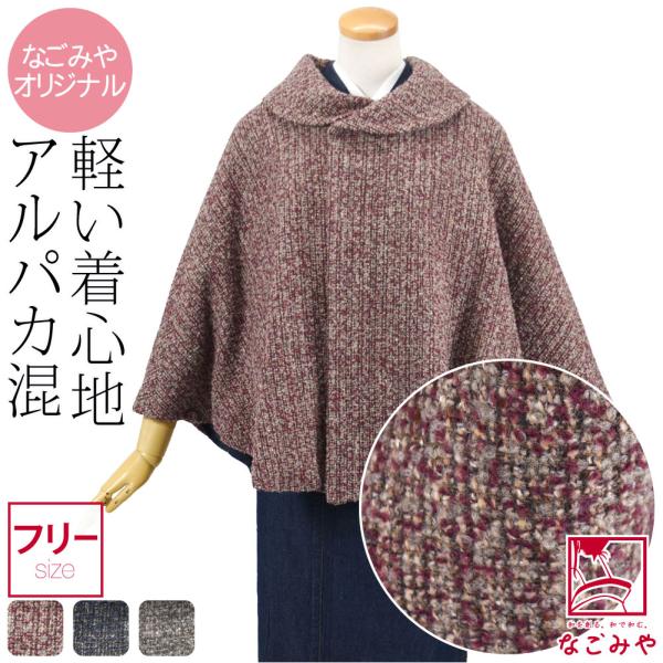 - レディース > ジャケット・アウター > 【ニューヨーカー】ウール ポンチョ ケープ マント くるみボタン ゆったり なごみや 爆買 着物 マント コート 防寒 冬用 日本製 WASOUL ループMIX