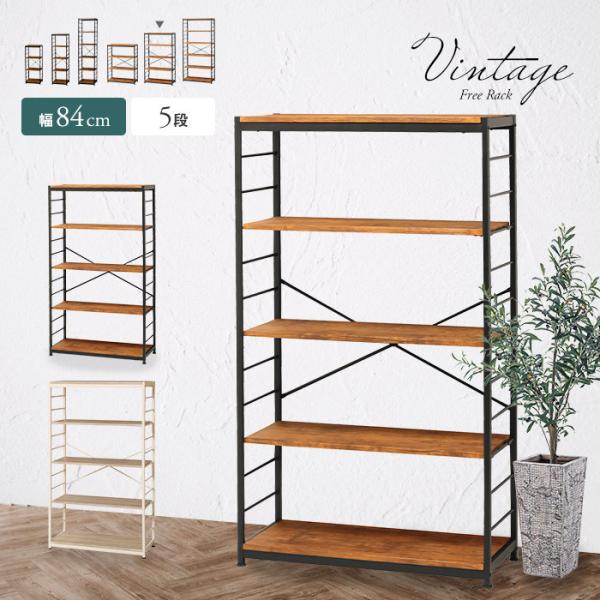- 棚・ラック・シェルフ > 木製ラック・ウッドラック > アンティーク 古家具 棚 シェルフ オープンラック ビンテージ ヴィンテージ風オープンラック 幅84cm 5段 ワイド シェルフ 木目 木製