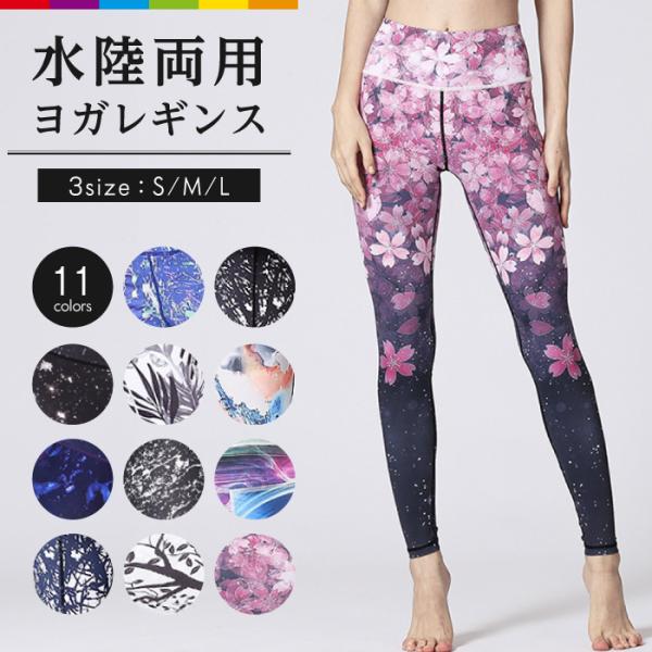 suria ヨガパンツ BLU レギンス スポーツタイツ 総柄 フラワー 新品L ヨガパンツ ヨガウェア ヨガ レギンス 水中ヨガ 水陸両用 柄レギンス