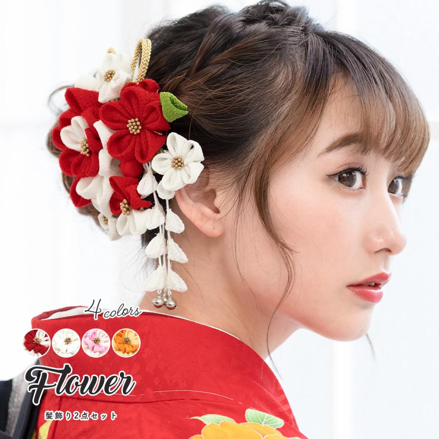 - レディース > ヘアアクセサリー > 和装髪飾り U42−2 赤 白 成人式 振袖 つまみ細工 かんざし 髪飾り SOUBIEN(創美苑) 髪飾り 成人式 つまみ細工 2点セット 赤 レッド 白