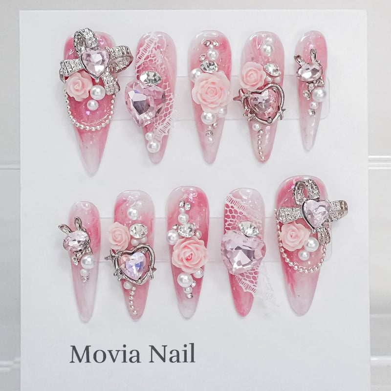 - ネイルケア > ネイルチップ・付け爪 > 量産型地雷系ゴテゴテビジュー 推しネイル現場 ネイルチップ オーダー #104 量産型地雷系ゴテゴテビジュー 推しネイル現場 ネイルチップ オーダー