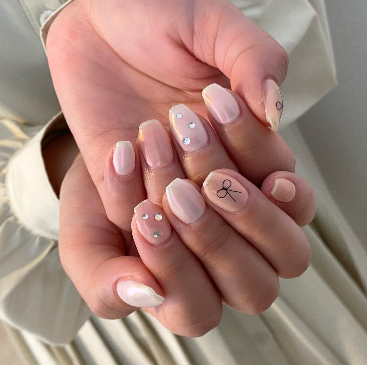 - ネイルケア > ネイルチップ・付け爪 > 【現品】リボンネイル ぷっくりネイル オーロラネイル ニュアンスネイル ピンク ♡オーロラリボンネイル♡ 現品】リボンネイル ぷっくりネイル