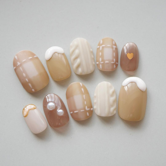 - ネイルケア > ネイルチップ・付け爪 > ネイルチップ オーダー 冬 チェック 韓国 ニット ベージュ ブラウン リボン ネイルチップ オーダー 冬 チェック 韓国 ニット ベージュ ブラウン
