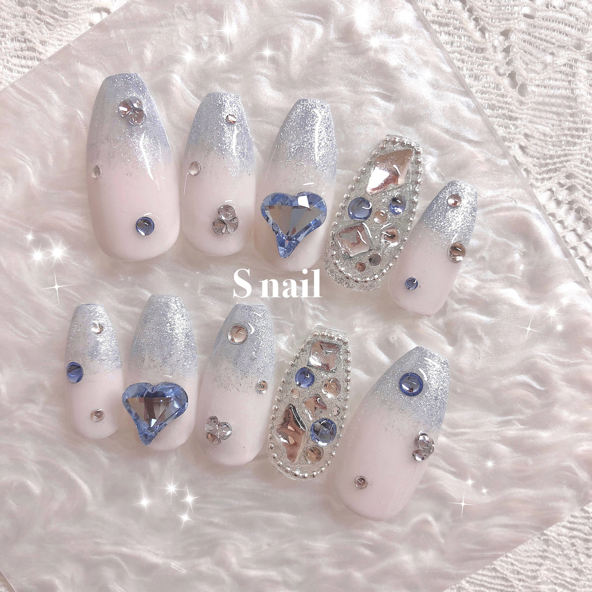 - ネイルケア > ネイルチップ・付け爪 > くすみブルーマグネットネイル013 クリアハート 韓国 冬 ちゅるん うるうる くすみブルーマグネットネイル 013 クリアハート 韓国 秋 冬 ワンホン