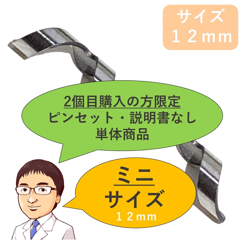 | 商品の特徴 | 2個目購入の方限定※他モール初回購入可)ピンセットなし・説明書なし。2個目購入の方限定※他モール初回購入可)ピンセットなし・説明書なし。2個目購入の方限定※他モール初回購入可)ピンセットなし・説明書なし。お値下げ致しました。巻き爪・陥入爪治療の相談室 - 巻き爪・陥入爪 矯正治療【ネイルエイド。巻き爪の矯正器具ネイル・エイド(1個)基本サイズ 14mmネイル・エイド・ミニ(1個)サイズ12mmミニの12mmは通常通販(Amazonなど)では販売されていません。ウラワG3 ネイルマシーン 白色。小さいサイズをお探しの方などいかがでしょうか1個 5480円 ・痛くない!自分で!自宅で!巻き爪矯正・陥入爪・巻き爪の専門外来の矯正をご自宅で!・加工不要の巻き爪・陥入爪の矯正器具!・高い矯正力を保ちつつ、付け外しが可能!・一般医療機器・日本製!大学病院採用!・目立たない美しいデザイン!・形状記憶合金・弾性ワイヤーを特殊加工!・折り曲げ・接着などの加工がなく耐久性あり!・クリップタイプの簡便さ、ワイヤータイプの矯正力・比較的厚い爪にも装着可能な巻き爪矯正器具【材質】ニッケルチタン | ||