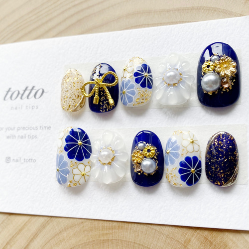 - ネイルケア > ネイルチップ・付け爪 > ネイルチップ 成人式 和柄 青 水引 振袖 和装 和花 花 オーダーネイル 着物 成人式ネイル/青/白/水引/振袖ネイル/和柄ネイル/着物/白無垢/和装