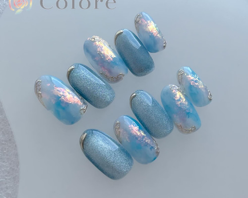 - ネイルケア > ネイルチップ・付け爪 > ネイルチップ ブルー ニュアンス シルバー 青 オーダーネイル 大人 キラキラ 94d6a26da6310c7662a1f922dbf9f4