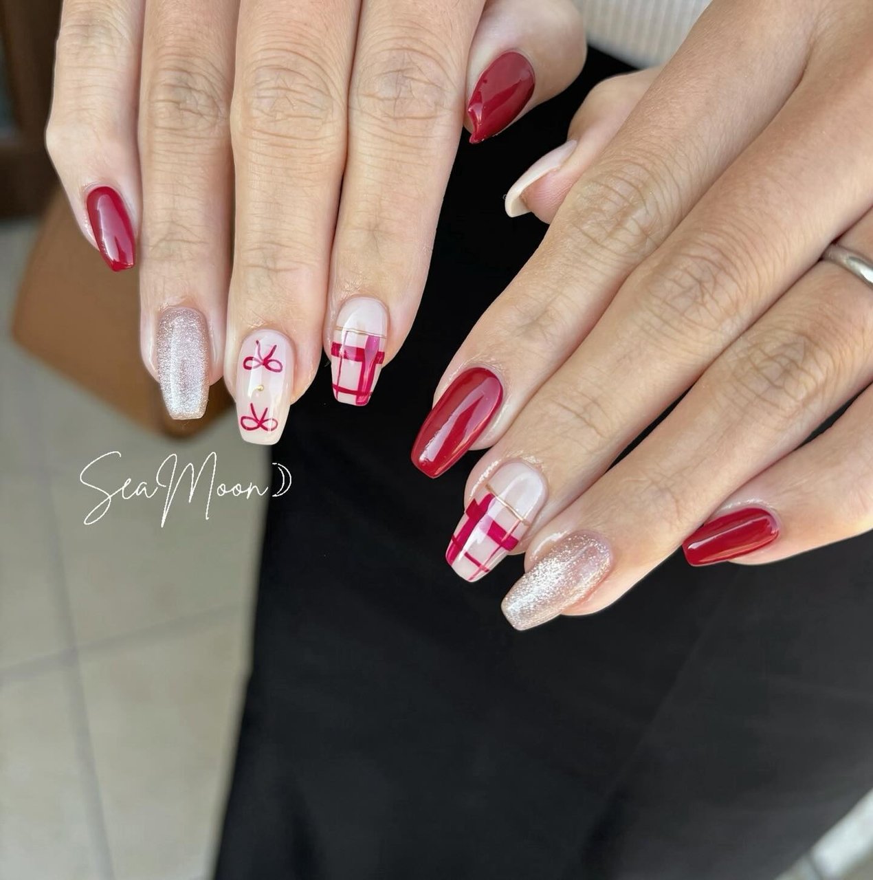 - ネイルケア > ネイルチップ・付け爪 > 12))ネイルチップ フレンチガーリー ボルドーネイル リボンネイル クリスマス 12))ネイルチップ フレンチガーリー ボルドーネイル リボンネイル