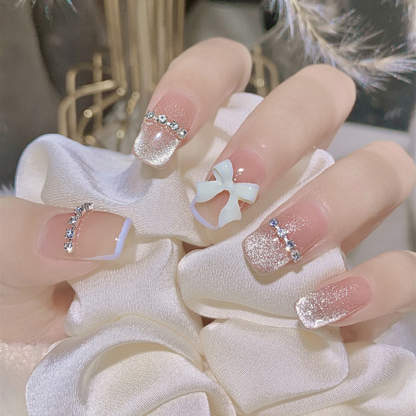 - ネイルケア > ネイルチップ・付け爪 > 100))ネイルチップ フレンチガーリー リボンネイル 韓国 クリスマスネイル 69))ミラーネイル リボンネイル フレンチガーリー シルバー ホワイト
