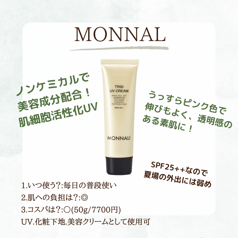 | 商品の特徴 | モナリ】UV美容クリーム | Alinn's STORE。楽天市場】【お買い物マラソン限定クーポン有】モナリ ゴールド。MONNALI(モナリ) ゴールドシリーズ TR50 UVクリーム 50g SPF25 PA++。モナリ MONNALI ゴールドシリーズ TR50 UVクリーム SPF25 PA++ 50g 日焼け止めTR50 UV CREAM50g / 7,700円私は戦う。 毎日長時間使用するものだからこそ、お肌への優しさを忘れてはいけません。 有効成分とSPF25 ++を武器に、私は紫外線と戦います。楽天市場】【送料無料】ひにまけぬ UVクリーム 30mL SPF50+ PA++++。 お肌の天敵である紫外線と。ぽふぽふ【即購入OK】さま専用。D.PL Cell UV栄養クリーム 50ml日焼け止め乾燥 紫外線 韓国コスメ。 それはまるで一日中、お肌にパックしているような気持ち良さ。クレ・ド・ポー ボーテクレーム UVn。★未開封 ゼオスキン パウダー サンスクリーン SPF30 日焼け止め★。成分水、シクロペンタシロキサン、BG、ジエチルヘキサン酸ネオペンチルグリコール、PEG-10ジメチコン、ジメチコン、ソルビトール、ペンチレングリコール、リンゴ果実培養細胞エキス、カッパフィカスアルバレジエキス、水溶性プロテオグリカン、プラセンタエキス、エチルヘキシルグリセリン、オリゴペプチド-34、加水分解コラーゲン、PEG-9ジメチコン、イソステアリン酸フィトステリル、レパゲルマニウム、スクワラン、硫酸Mg、ステアリン酸、(ジメチコン/メチコン)コポリマー、海水、メチコン、ジステアルジモニウムヘクトライト、キサンタンガム、セスキイソステアリン酸ソルビタン、レシチン、グリセリン、クエン酸Na、トコフェロール、フェノキシエタノール、酸化亜鉛、酸化チタン、タルク、水酸化AI、マイカ、酸化鉄・組み合わせのご相談はお気軽にください♡・他に何品か出品している商品との組み合わせも可能です#MONNALI#クレンジング#モナリ#TR50エッセンス#ミハツ#MIHATSU#TR50#BLACKブラックシリーズ#シャンプー#トリートメント#育毛剤#GROW#ピーリングジェル | ||
