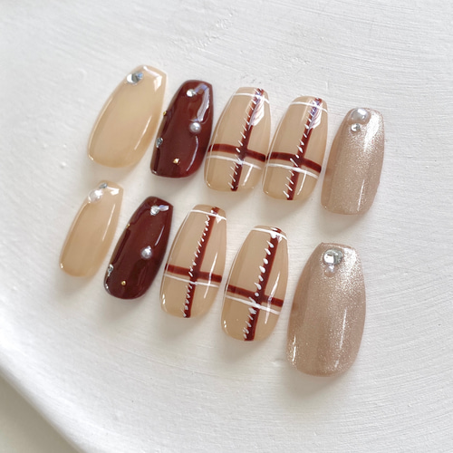 - ネイルケア > ネイルチップ・付け爪 > ネイルチップ オーダー チェック フラッシュ フレンチ ボルドー ガーリー ネイルチップ オーダー チェック フラッシュ フレンチ ボルドー ガーリー