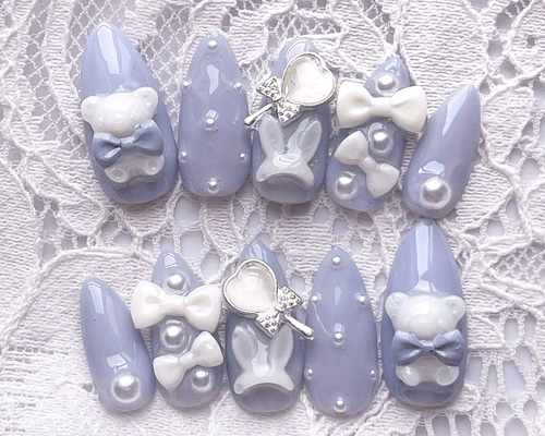 - ネイルケア > ネイルチップ・付け爪 > ネイルチップ オーダー フレンチ ガーリー 韓国 量産型 推し 地雷系 シアー ネイルチップオーダー♥︎韓国綺麗系量産型地雷系フレンチガーリーくま