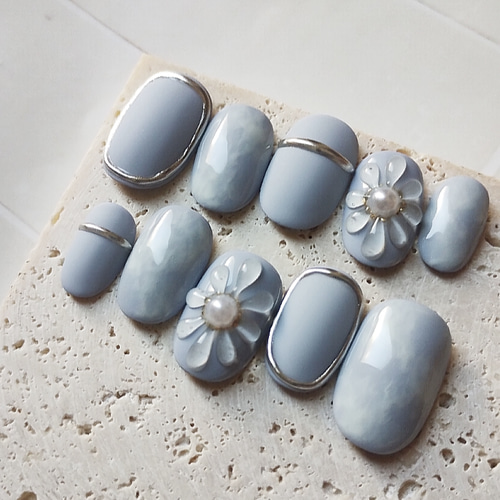 | 商品の特徴 | ネイルチップ #02 ブルーグレー マーブル ぷっくりフラワーネイル。シンプルくすみブルーぷっくりフラワーネイル - rpoco | minne byGMO。maxresdefault.jpg。いろんなグレーの秋冬マーブルネイル/ネイルチップ - re:nail | minne。見てくださりありがとうございます!こちらは現在、サイズオーダーのみになりますオーダー価格 900円ご希望の方はコメントにて形とサイズを教えていただけますと幸いです(o^^o)専用ページをお作りいたします*サイズがご不安な方へ計測用ネイルチップの販売もしておりますのでぜひご検討ください(o^^o)・No.02の再販になりますが最初のものと少し作り方や材料、デザインを変えています同じデザインでバタフライパーツが付いてるものもございますマーブル、マグネット、ぷっくりフラワーを合わせたネイルになります(^^)・ネイルグミシールを1回分お付けします(2シートご入り用の方は+30円で計2回分お付けできます)・リピートで購入してくださる方はリピーター割引としてお気持ちですが30円の割引をいたしますのでぜひコメントでお知らせください(^^)・+200円でメルカリ便(ネコポス)に変更可能です○完成と発送に関しましてはプロフィールをご覧いただければと思います形はショートオーバルベリーショートショートバレリーナショートアーモンドからお選びいただけます*オーダーをいただきました場合、ニュアンスネイルになりますのでマーブルやマグネットの模様が一つ一つ違ってしまいますマグネットに合わせてるミラーですが、マグネットの光り方のバランスに合わせてデザインしますので写真と同じデザインにならないことがあります*ネイルチップに関しましてはプロフィールもご覧いただけたらと思います*いいね!をつけてくださった方がいましたらありがとうございます(o^^o)商品は数日で削除して再出品しますのでお気軽にフォローをどうぞ!よろしくお願いいたします#ネイルチップ#ブルーネイル#グレーネイル#青ネイルマーブルネイル#マグネットネイル#お花ネイルカラー···ブルー部位···手枚数···10〜19枚種類···ネイルチップ完成品デザインテーマ···ぷっくりフラワー,ニュアンス,淡色季節/イベント···春,冬,夏部位···手カラー···ブルー系,グレイ系,ホワイト系デザインテーマ···ニュアンス,ぷっくりフラワー,マグネット,淡色 | ||
