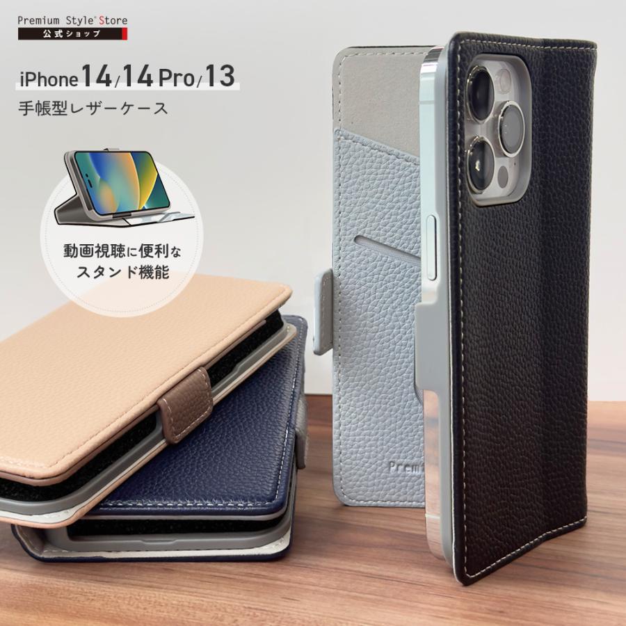 iPhone 14 pro ケース 手帳型 シンプル ネイビー カバー Premium Style iPhone 14Pro 14 13 ケース 手帳型 カバー ブラック