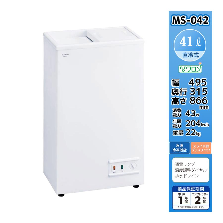 | 商品の特徴 | MS-042 冷凍ストッカー 三ツ星貿易 幅495×奥行315×高さ866mm 上部。MS-042 冷凍ストッカー 三ツ星貿易 幅495×奥行315×高さ866mm 上部。Excellence 冷凍庫 MS-042G ホワイト 三ツ星貿易 冷凍ストッカー 41L。屋内で使用しております。内外装共に比較的きれいではありますが、霜取り時にドライバーで傷をつけてしまった部分があります。ショーケースとなっており、扉が透明になっており中の冷凍物が見える仕様となっております。商品、付属品は画像の通りとなっておりますので、よくご確認のうえご購入ください。何かご質問などあればお気軽にコメントください。【高い冷凍能力】この冷凍庫は、効率的な冷却システムを搭載しており、食材を素早く冷凍します。特に、長期間保存が必要な食材に最適です。【コンパクトなデザイン】スタンド型のデザインで、スペースを有効活用できます。狭いキッチンや小さな部屋にもフィットします。【使いやすい操作パネル】シンプルな電源スイッチと温度調整機能があり、直感的に操作できます。冷凍庫の管理が簡単です。- ブランド: Excellence- モデル番号: MS-042G- 冷凍庫のタイプ: スタンド型- 色: ホワイト- 電源: AC 100Vご覧いただきありがとうございます。。kf-58sl.jpg。Panasonic コンパクト冷蔵庫 冷凍室付き。ハイセンス45L 小型冷蔵庫2024年製。小型 アイリスオーヤマ 2ドア冷蔵庫 IRSD-9B-W 90L 2020年製。Haierノンフロン冷凍冷蔵庫85L 2022年製BR-85A除菌・清掃済み。Hisense 冷蔵庫 HR-B12C 2019年製。《展示品・未使用品》アビテラックス 45L小型冷蔵庫 AR-452 2024年製。冷凍庫 ACF-110E。小型冷蔵庫 冷庫さん ブラック。美品 MUJI 無印良品 2ドア126L 冷蔵庫 MJ-R13A 2020年。Hisense 2ドア冷蔵庫 ホワイト 省エネ。Abitelax AR-975E 冷蔵庫 96L 2020年式 | ||
