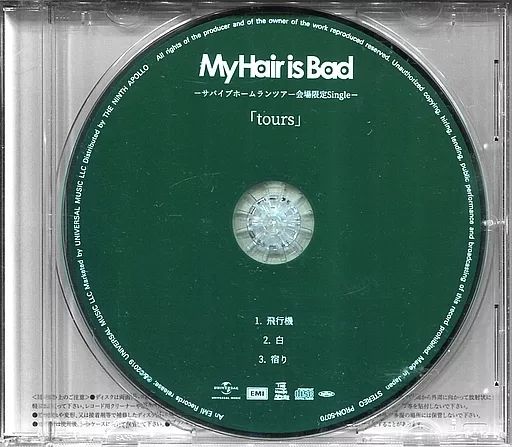 | 商品の特徴 | 中古】邦楽CD My Hair is Bad / tours -サバイブホームランツアー会場。My Hair is Bad tours. 飛行機 - メルカリ。My Hair is Bad [tours] 会場限定Single My Hair is Bad 会場限定。マイヘア My Hair is Bad tours 会場限定CD 邦楽 My Hair is Bad。1.飛行機2.白3.宿り | ||