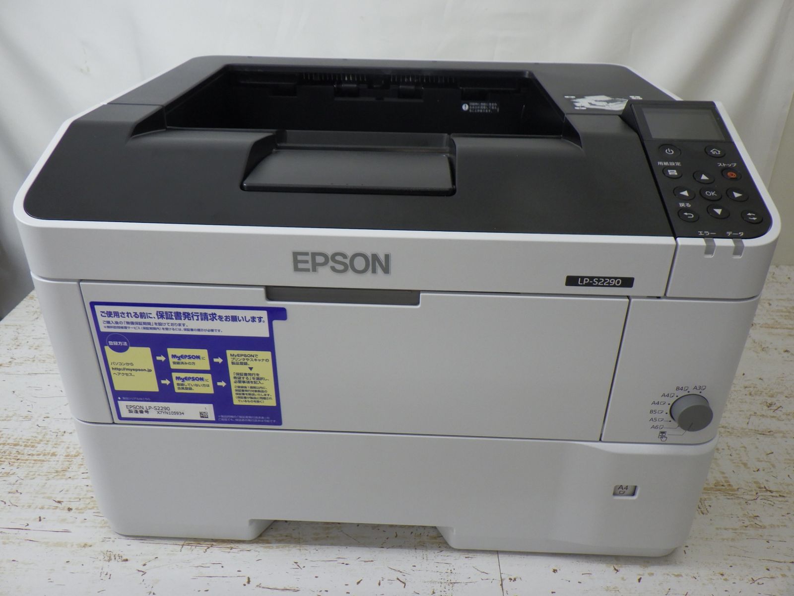 | 商品の特徴 | EPSON エプソン LP-S2290 レーザープリンター複合機 無線LAN 【公式通販】。EPSON エプソン LP-S2290 レーザープリンター複合機 無線LAN EPSON。EPSON エプソン LP-S2290 レーザープリンター複合機 無線LAN 【公式通販】。エプソン エプソン LP-S2290 レーザープリンター、レーザー複合機 - 最。☺︎即購入OK☺︎ 【定価:106,975円】 #ぷりんのくらふと家電【良品】【大人気】【極美品】【早い者勝ち】※自宅保管ですが、気にならない方はとてもお買い得です! ■商品の状態■まだ使えます!新しいプリンターを購入した為、使わず保管しておくより、ご使用していただける方にお譲りしたいと思い出品いたしました!通常使用による多少の汚れ・キズが付いておりますが、使用には問題ありません! ※保管ならびに検品に伴い写真に映らない程度の細かな小傷がある場合がございます! ■商品名EPSON エプソン LP-S2290 レーザープリンター複合機 無線LAN ■付属品本体取扱説明書類電源コードUSBコード ☆メンテナンス項目☆・除菌アルコールによる簡易清掃済み!・完全動作品! ☆発送方法☆リサイクルダンボールやプチプチ、梱包用ラップ等を状況に応じて利用して丁寧に梱包、発送させて頂きます! ■その他スマホで写真撮影しているため、色合いや状態が実物と異なる場合があります!なるべく丁寧に分かりやすいように撮影していますが、あくまで素人レベルですのでご理解ください!※付属品は写真のものが全てとなります! ■商品説明トップ : ハイライト接続技術 : Wi-Fi, USB, Ethernet印刷技術 : レーザー特徴 : ネットワーク対応モデル名 : ビジネスプリンターLP-S2290は30枚/分という高速プリントを実現明るく見やすい2.4型カラー液晶モニターを搭載最大用紙サイズ : A3給紙枚数:標準670枚コピー機能なし/スキャン機能なし/ファックス機能なし商品仕様ブランド : エプソンメーカー : エプソンシリーズ : ビジネスプリンター梱包サイズ : 60 x 55 x 45.5 cm商品モデル番号 : LP-S2290ホワイトフォームファクタコピー機重量 : 26 kg管理番号562 | ||
