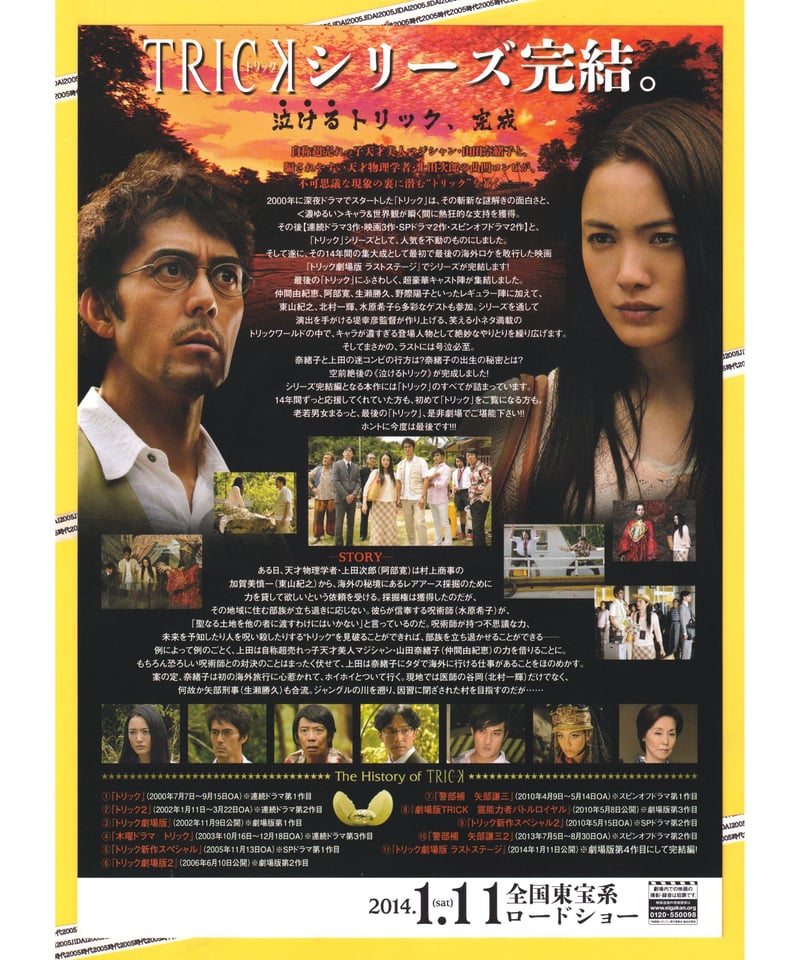 | 商品の特徴 | ⓅTRICK トリック −劇場版− ラストステージ | 映画チラシ。Amazon.co.jp: 【映画パンフレット】 『トリック劇場版 ラストステージ。トリック TRICK 劇場版 阿部寛 仲間由紀恵 映画パンフレット|Yahoo。映画「トリック-劇場版-」パンフレット自宅保管に理解ある方、宜しくお願い致します。ⓅTRICK トリック −劇場版2− | 映画チラシ・フライヤー。#パンフレット #堤幸彦 #仲間由紀恵 #阿部寛 | ||