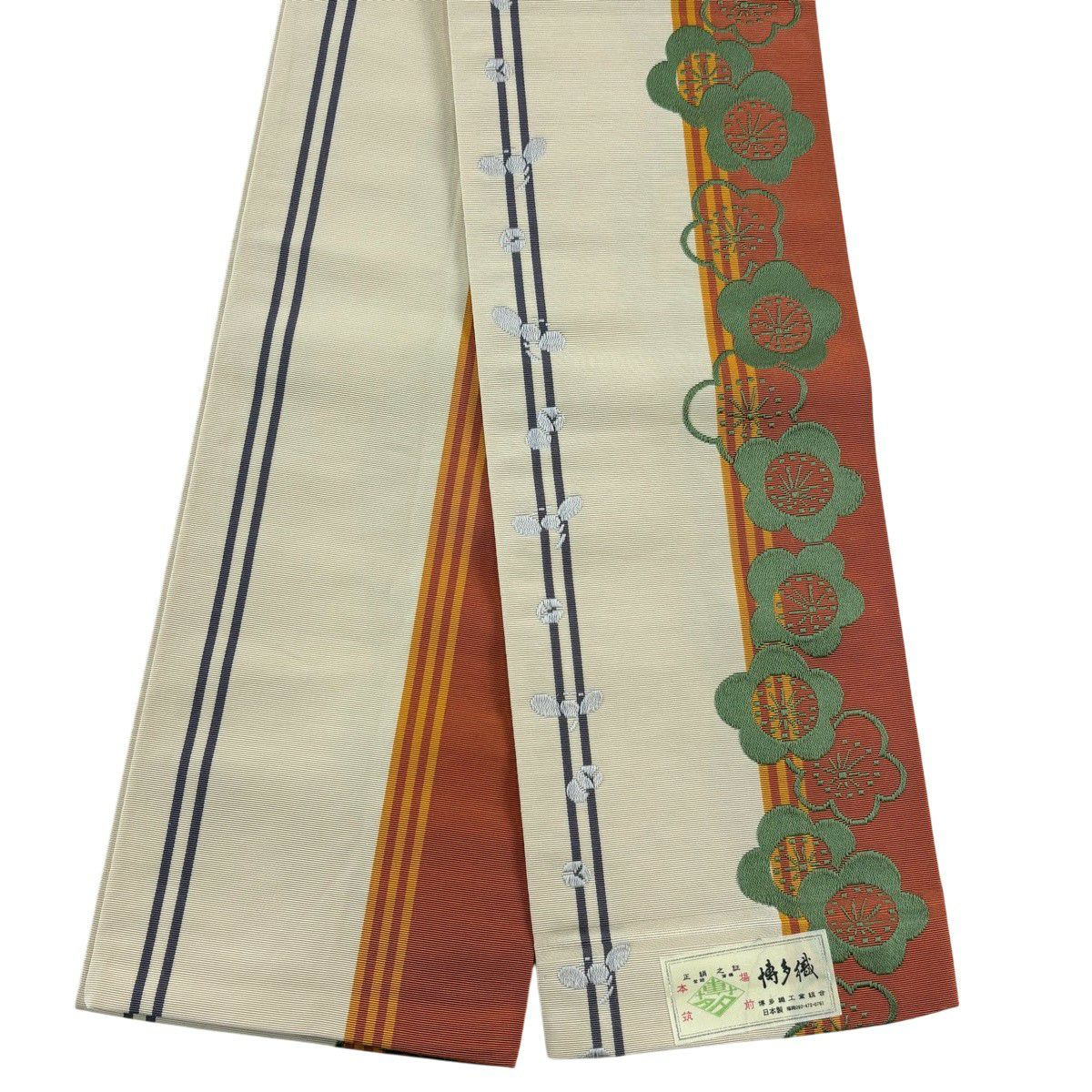- レディース > 着物・浴衣 > ✨ 美品【 本場筑前 博多織 半幅帯 】証紙付き 未仕立て 梅 黒色地 352 美品】半幅帯 名品 証紙あり 幾何学模様 献上柄 本場筑前博多織 薄紫