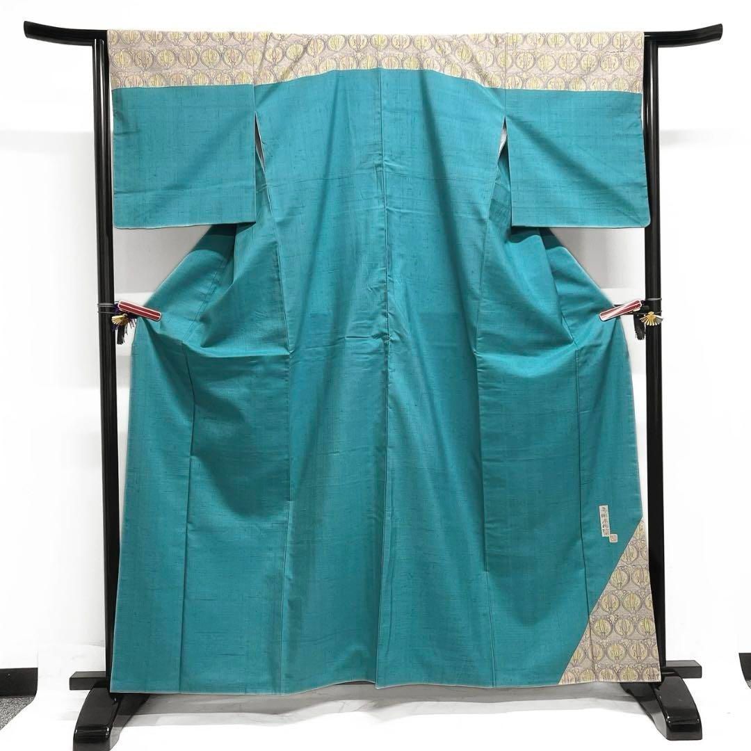 | メーカー | 作家もの 紬 付け下げ 抽象模様 ナイルブルー 紋無し 着物 063a d |
