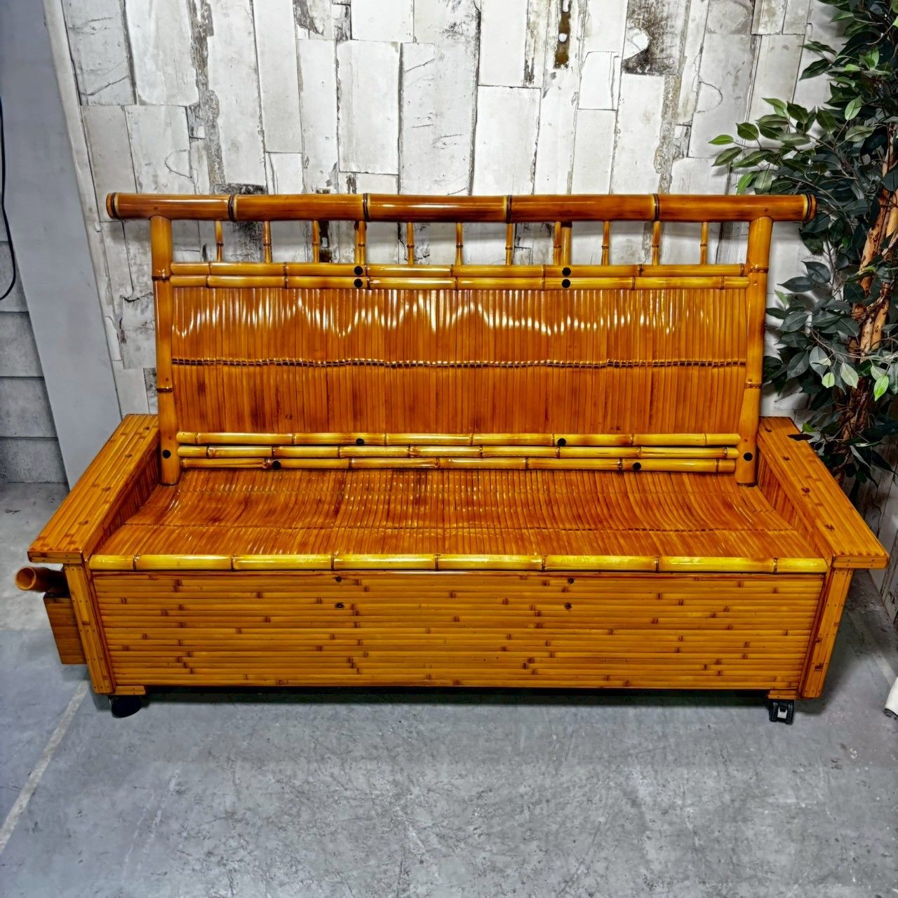 | 商品の特徴 | 梅里竹芸 3人掛けソファベンチ収納付き 竹製。アウトレット ショップ 通販家具・インテリア - 梅里竹芸 3人掛け。梅里竹芸 3人掛けソファベンチ収納付き 竹製 梅里竹芸 3人掛けソファ。梅里竹芸の3人掛けソファ、収納付きで実用的です。目立った傷とかは殆どありません。[美品]- 素材: バンブー(竹)- デザイン: 背もたれ付き、収納付き- 特徴: キャスター付き、後ろ側も装飾あり- 色: ナチュラルウッド- サイズ: 3人掛けソファ⭐︎座面と背もたれは緩やかなカーブ で健康的な姿勢を保ち首や頭も トップの丸竹で支えると癒されますマガジンラックは取り外し可能幅180㎝✖️ 奥行58㎝✖️ 高さ98㎝ご覧いただきありがとうございます。。梅里竹芸|日本で唯一の竹家具専門店。YIN灯日々専用 柏木工 シビルチェア CC71A BK オーク材 4脚セット④。YIN灯日々専用 柏木工 シビルチェア CC71A BK オーク材 4脚セット② | ||
