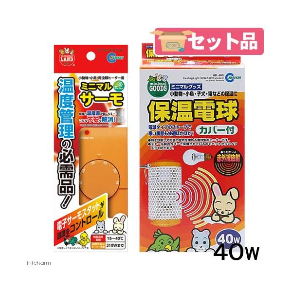 - 鳥用品 > 保温電球・保温用品 > 【新品】セラミックヒーター 40W & ミニマルサーモセット保温電球小鳥動物爬虫 マルカン 保温球&サーモセット 保温電球 40W カバー付き+ミニマル