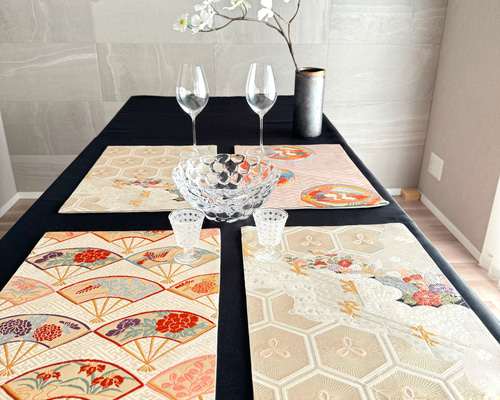 - キッチン・食器 > テーブル用品 > kikiページ テーブルランナー&ランチョンマット 正絹袋帯リメイク kikiページ テーブルランナー&ランチョンマット 正絹袋帯リメイク 豪華