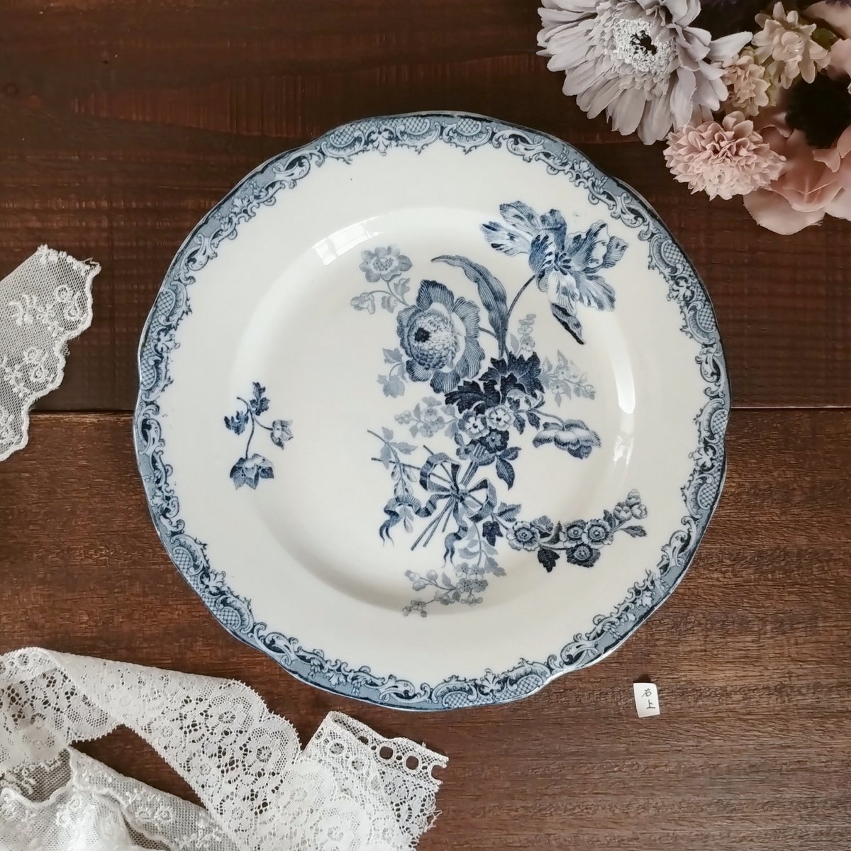 - キッチン・食器 > テーブル用品 > 【B】2枚セット【サルグミンヌ】フォンタンジュプレート /フランスアンティーク フランスアンティークプレート サルグミンヌ フォンタンジュ青 右上