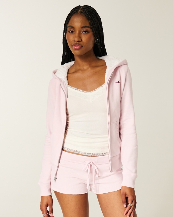 HOLLISTER ピンク ジャケット 内側ふわとろファー未使用美品 送料無料 Women's Hollister Feel Good Faux Fur-Lined Zip-Up Hoodie | Women's