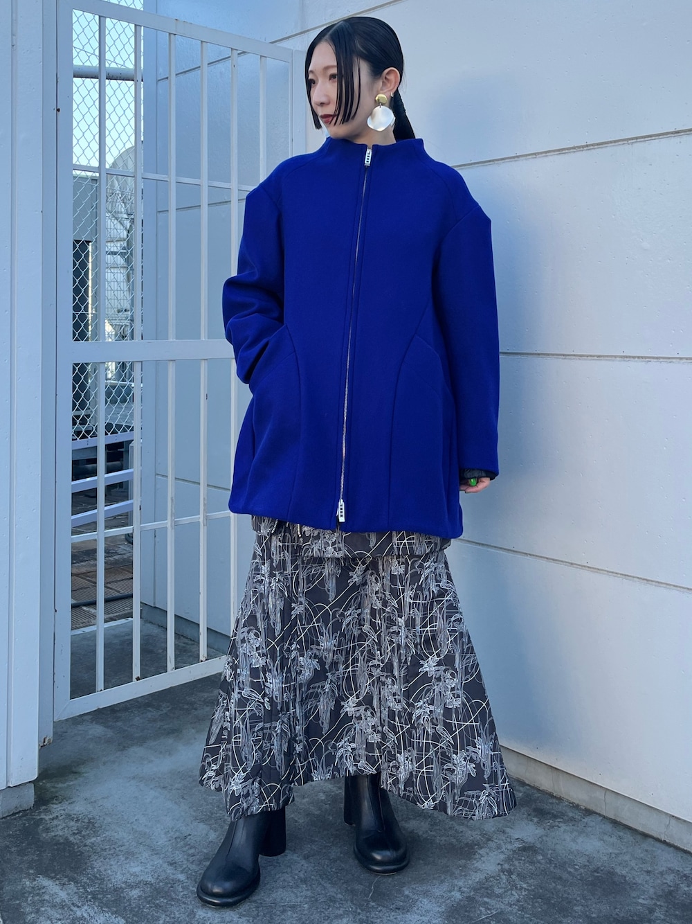 美品✨24AW UN3D. アンスリード タックショルダーミドルコート 青 TUCK SHOLDER MIDDLE CT / タックショルダーミドルコートを使った人気