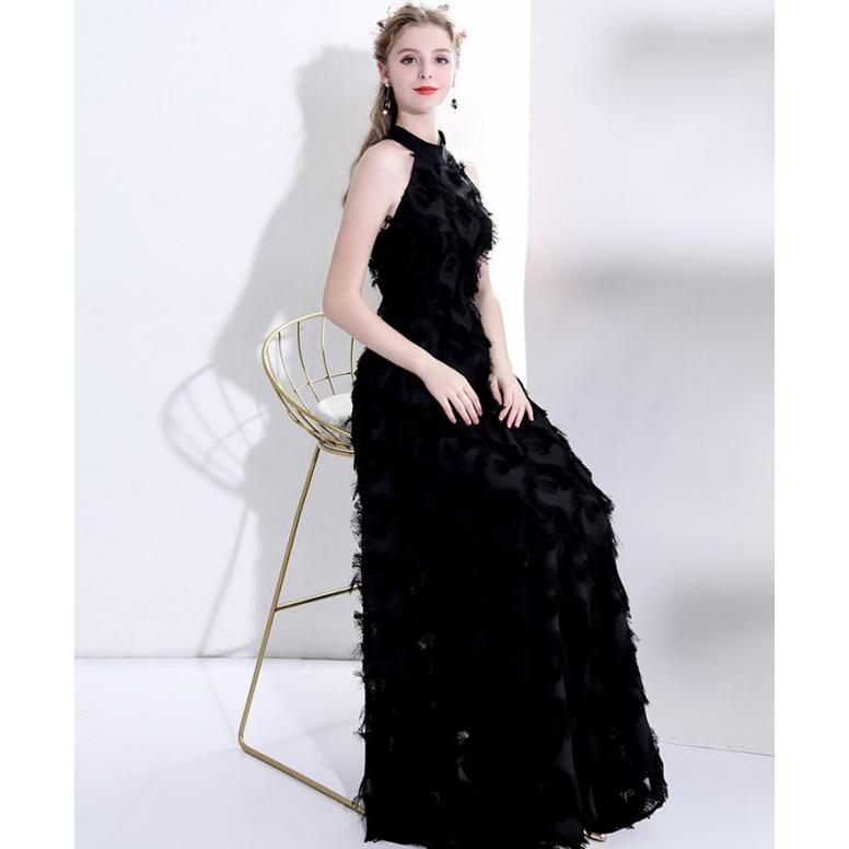 ロメオジリ ホルターネックロングドレス バックオープン 黒 60-88*HD4 パーティードレス 結婚式 お呼ばれドレス ホルターネック ロングドレス