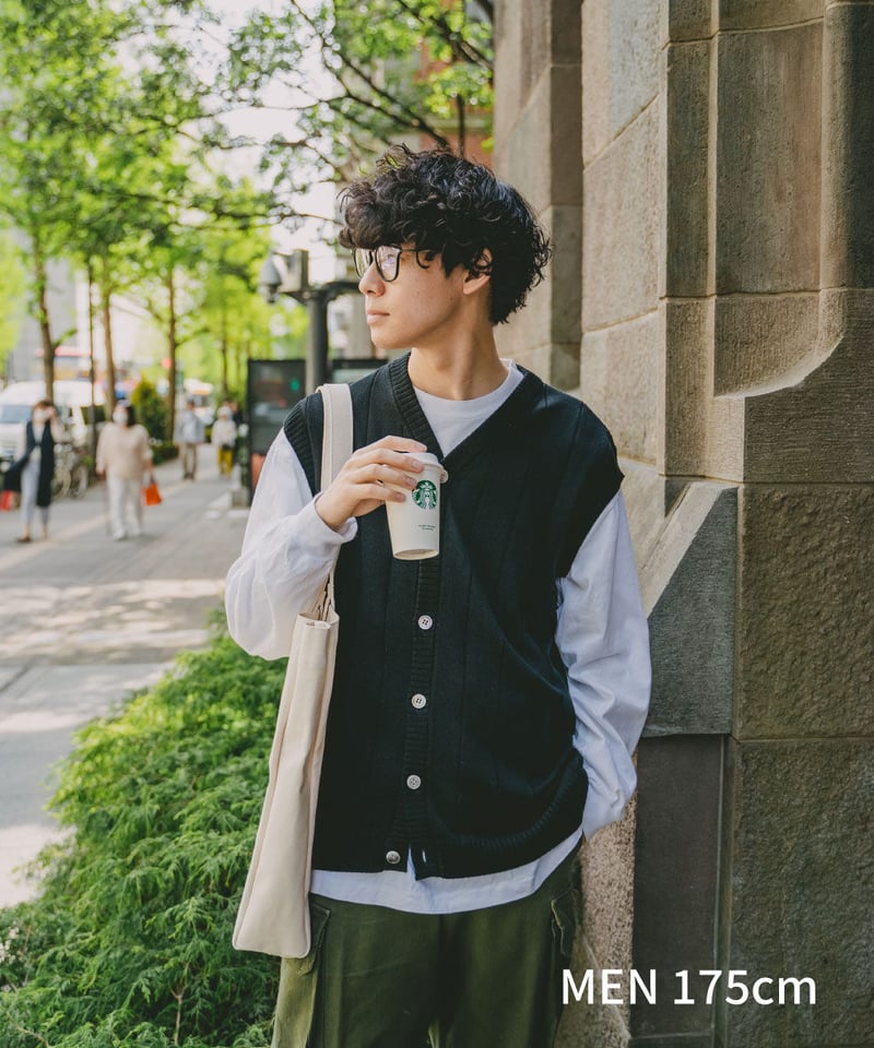 - メンズ > トップス > UNFOLK Giza cotton vneck knit vestアンフォーク 09 Giza cotton vneck knit vest (Black) | UNFOLK