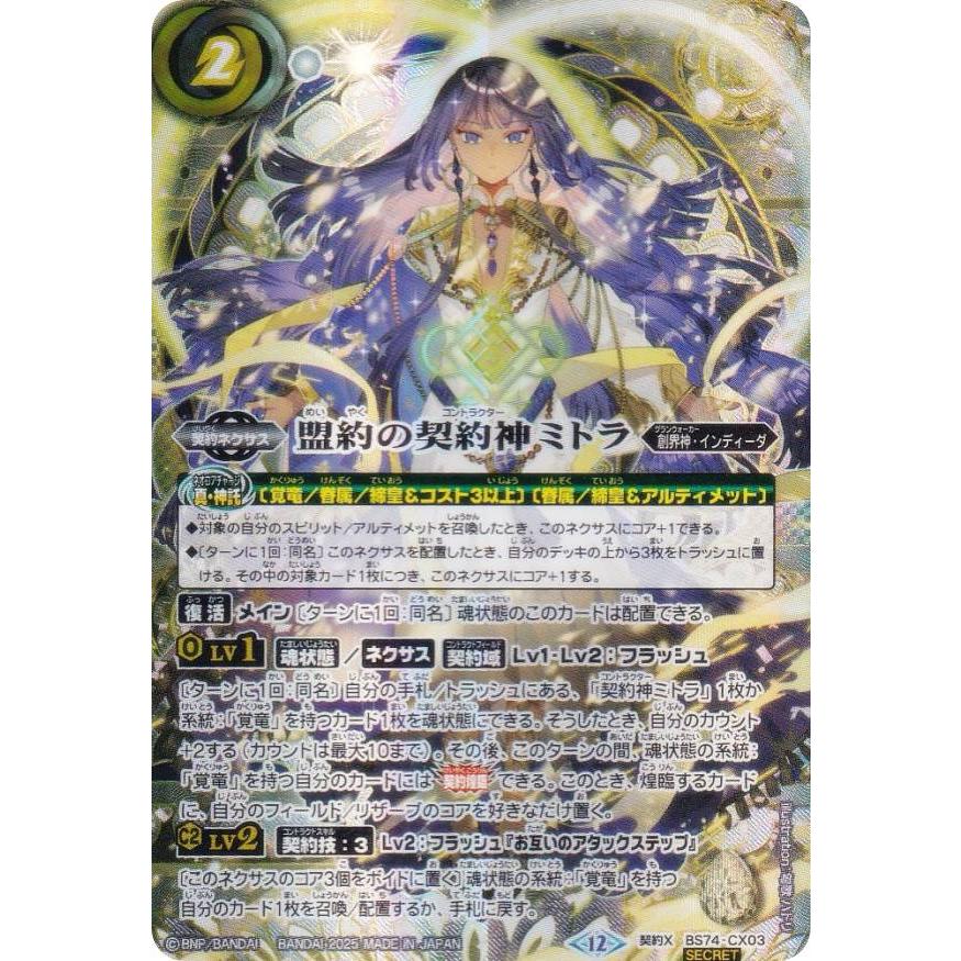 - トレーディングカード > バトルスピリッツ > 盟約の契約神 ミトラ BOX購入特典版 シークレット 希少 SECRET】バトルスピリッツ BS74-CX03 盟約の契約神ミトラ (契約Xレア