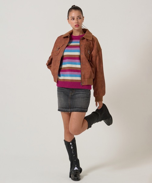 - レディース > ジャケット・アウター > リブ ドッキング フェイクレザーブルゾン TINA:JOJUNブラウン新品未使用 リブ ドッキング フェイクレザーブルゾン TINA:JOJUN(ブルゾン