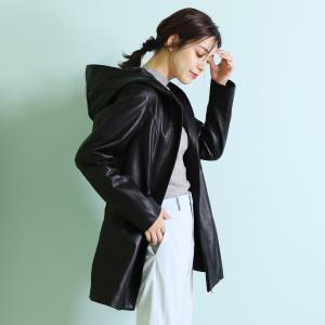 - レディース > ジャケット・アウター > 【美品】エポカ ラムレザー ジャケット フード ブラック クロップド丈 L sankyo shokai(三京商会) ソフトラム レザー ジャケット フード付