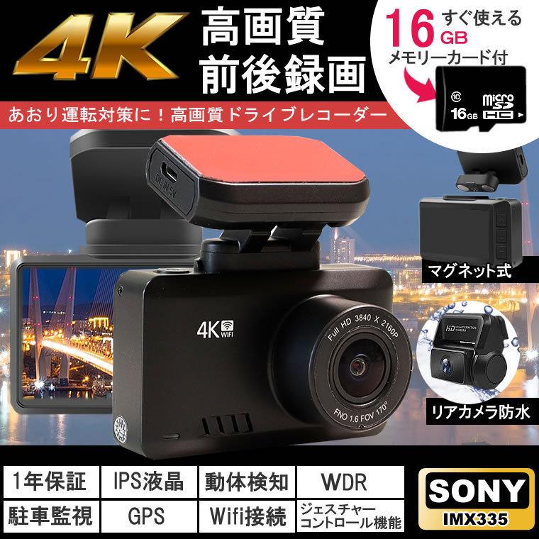 - 車 > アクセサリー > ドライブレコーダ 4K SONY製 フルHD 高画質 広角 常時録画 暗視 防水 ドライブレコーダー 4K 前後カメラ GPS ジェスチャーコントロール SONY