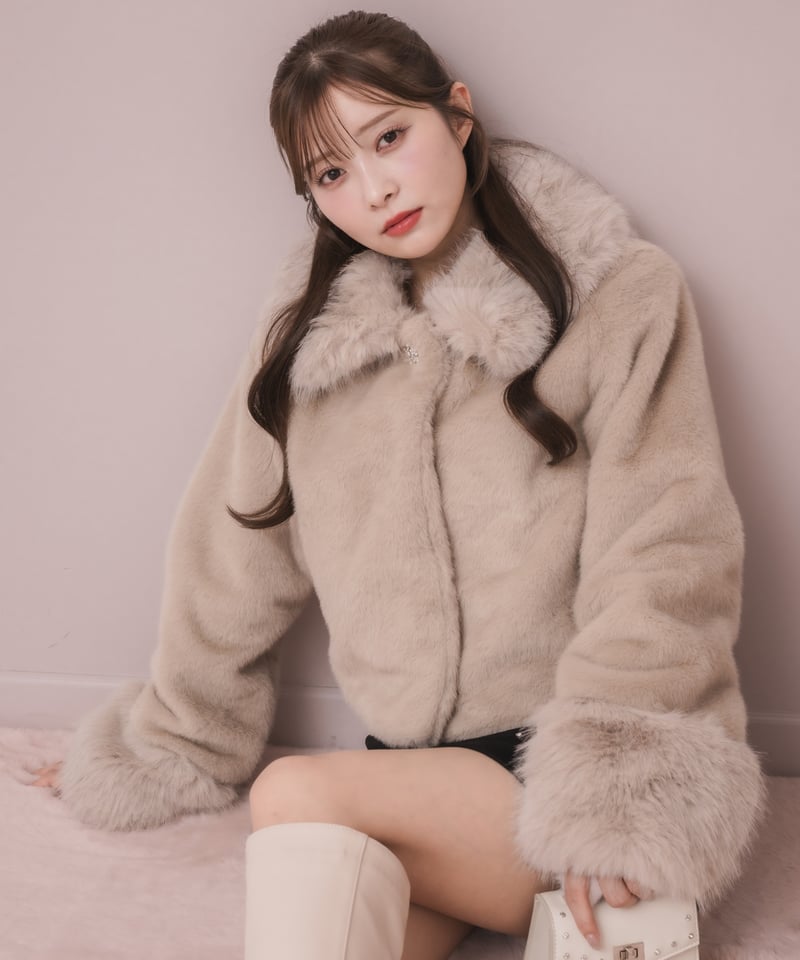 - レディース > ジャケット・アウター > 【未使用 美品】大きいサイズ ef-de ビジュー付きショートコート17号 ビジューボタン付きファーショートコート | DOLCELICHE(ドルチェ