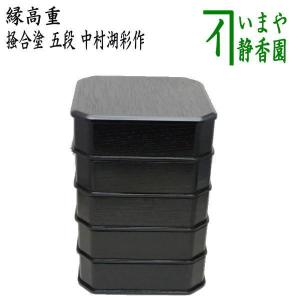 縁高 五段 『一閑塗 七宝四方透かし』 漆器 重箱 菓子器 茶道具 茶道 工芸品 茶道具 菓子器 縁高 縁高重 黒真塗り 五段 段付 高野浩雲作 黒真塗