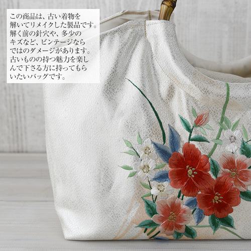 | メーカー | きらめく菱花文の帯 リメイク バンブーハンドルバッグ 浅型マチ広め きらめく菱花文の帯 |