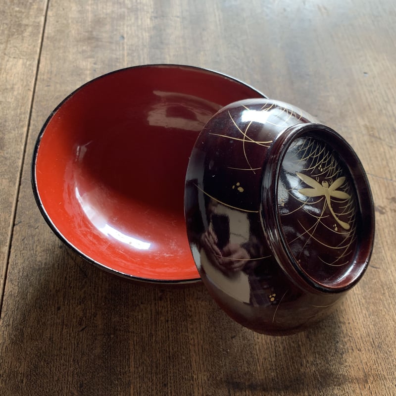 - 美術品・アンティーク・コレクション > 工芸品 > 明治・大正期 骨董 吸い物椀 木製 漆器 お椀19客 古道具 漆器 お椀 汁椀 吸物椀 とんぼ柄 黒 金蒔絵 明治 大正 和食器 古道具