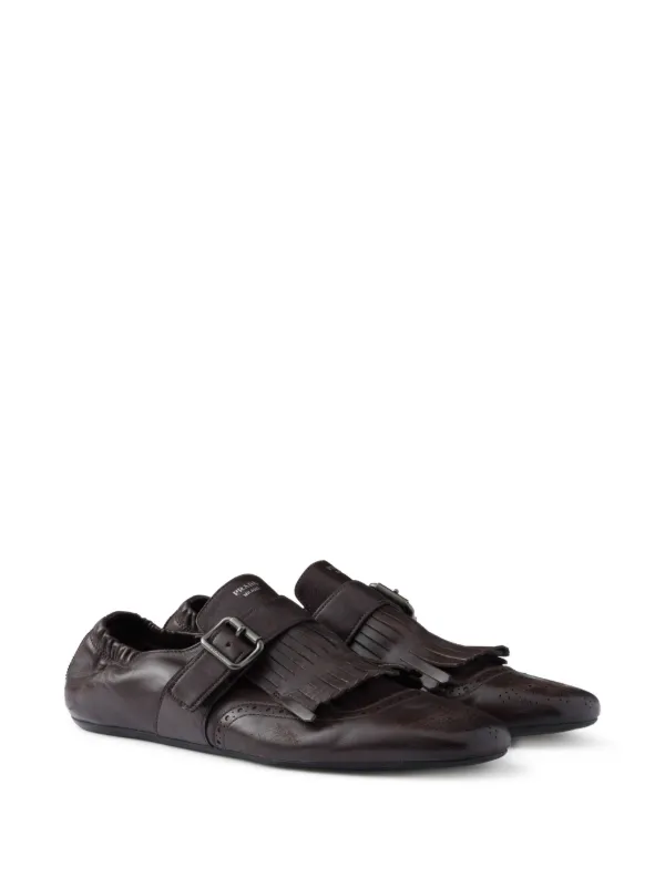 靴 16aw PRADA monk strap kilt leather shoes Prada Fringed monk-strap Loafers | Brown | FARFETCH