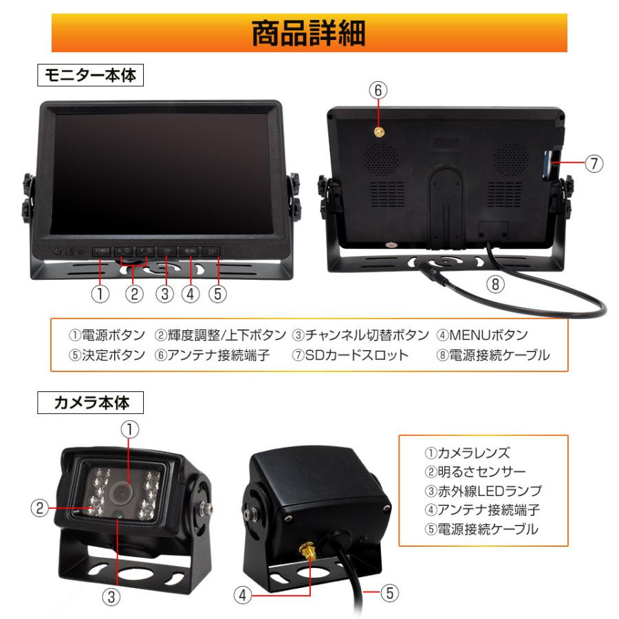 | 商品の特徴 | トラック バックカメラ 1台&9インチモニターセット12V/24V対応。トラック バックカメラ 1台&9インチモニターセット12V/24V対応。改良型】ワイヤレス 9インチ バックモニター バックカメラ セット 技適。✅新品未使用✅MTK製9インチワイヤレスバックカメラモニター カメラ個数1ドライブレコーダー機能付きの多機能モデルTW901です。トラック・キャンピングカーから乗用車まで幅広く対応し安全運転をサポート!メルカリ便で2日以内に発送します!2万5000円で売れている商品の未使用品でお得です。MTK製の9インチワイヤレスバックカメラモニターの未使用品です。この一台で後方確認の安全性向上はもちろん、万が一の際の証拠記録までカバーできる、非常に便利なアイテムです。この商品は、トラックやキャンピングカー、バン、軽トラックはもちろん、乗用車にも取り付け可能です。配線や設置も比較的簡単に行えるよう設計されており、DIYでの取り付けにも挑戦しやすいのが魅力です。後方確認が格段にしやすくなり、駐車時や車線変更時の安全運転を強力にサポートします。✨商品の特徴と魅力✨大画面9インチモニター:後方映像を大きく、鮮明に映し出す9インチの大画面モニターは、一般的な7インチモニターに比べて格段に見やすく、安全確認をより確実に行えます。煩わしい配線作業を大幅に削減できるWIFI式のバックカメラを採用。取り付けの手間を省きます。「技適マーク」を取得済みドライブレコーダー機能搭載:録画機能も搭載しているため、簡易的なドライブレコーダーとしても活用できます。上書き録画機能も付いているので、容量を気にせず継続して記録可能です。記録媒体は8GB〜128GBのmicroSDカード(Class10以上)に対応。高画質・広角カメラ70万画素の高画質カメラで、後方の状況を鮮明に映し出し広角140度レンズ搭載で、死角になりやすい広範囲をカバーします。暗視対応で夜間や暗い場所でも安心して使用できます。防塵・防水性能はIP68で、厳しい環境下でも安心して利用できます。適切な箱に入れ2日以内に発送いたします。#バックカメラ #ドライブレコーダー #ワイヤレスカメラ #車載モニター #9インチモニター #キャンピングカー #トラック用品 #未使用品 #後方確認。楽天市場】【期間限定☆特価】トラック用 バックカメラ モニター。※アレ日産純正ナビ MJ118D-W。カロッツェリア製 AVICーRZ99。10インチステップワゴン専用ディスプレイオーディオアンドロイドナビカープレイ。ATOTO S8G2A74SD インチ ヘッドユニット Bluetooth対応。ストラーダ CN-HE01WD 地図データ2021年 フルセグ 新品アンテナ付。20台分 ケンウッド 純正新品地デジアンテナ。カーナビ MM514D-L 多機能。★KENWOODカーナビMDV-D504BT★地図データ2016年 ケンウッド。KENWOOD MDV-L505 ケンウッド彩速ナビ 地図2017年。★スズキ純正 HARMANメモリーナビ ラパン(HE33S)用パネル付★動作良好。EONON 10.1インチ androidナビ GA2193SE。Panasonic CN-RX01D カーナビ BD、DVD、SD、地デジ。トヨタ純正 改良型ハリアーHVフロントカメラ。11.5インチポーダプルディスプレイオーディオ ドリームメーカー。カーナビ SUNVIC CarPlay AI Box。971 動作良好 カロッツェリア AVIC-HRZ990 フルセグ | ||