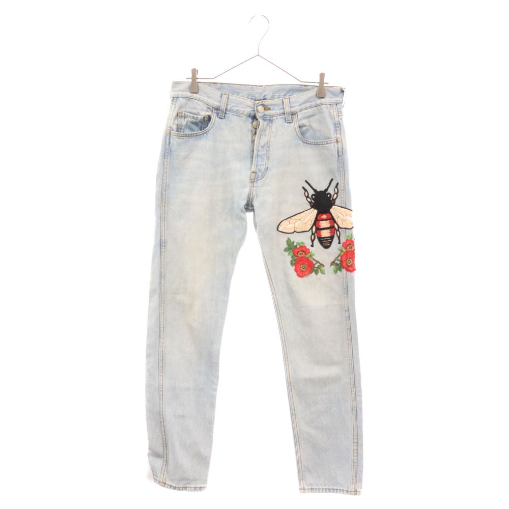 で*)様 最安値 GUCCI 花柄刺繍スキニーデニム GUCCI (グッチ) 17SS Bee Embroidery Patch Jeans 452539 XR423 ビー