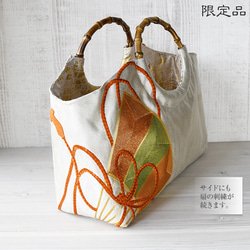 | メーカー | きらめく扇面に刺繍の白梅 袋帯 リメイク バンブーハンドルバッグ 浅型マチ広め |